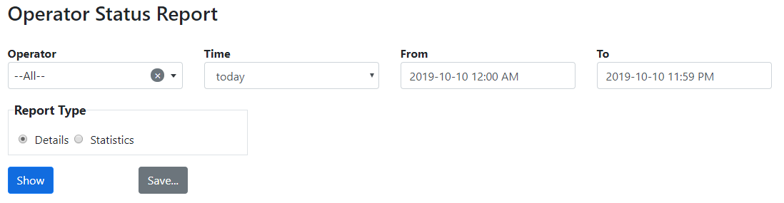 2.For Report Type, choose Details to show the user and time for the All Clear each day or choose Statistics to show a Min, Max and Avg of times over the time period indicated. 3.Click Show to display the results on the web page or Save ... to save as an Excel® document.