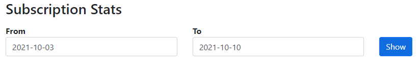 Subscription Statistics displays to the the number of emails which have been sent to subscribers over a given time frame. The statistics are broken down both by sender and by type. 1.Enter a From and To date & time: